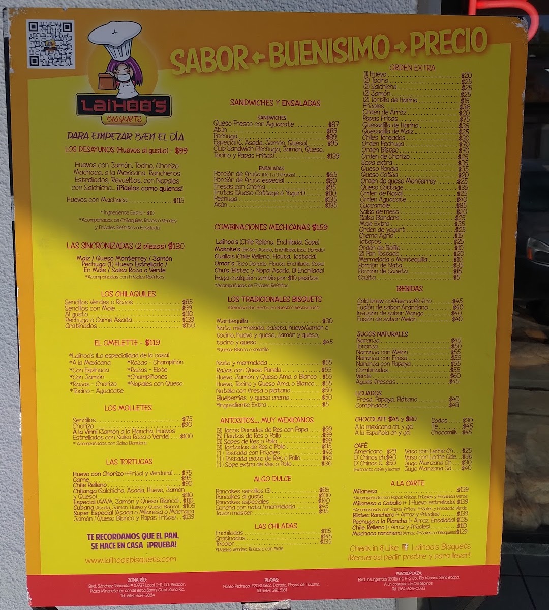 Introducing the menu at Laihoo's Bisquets Playas, a hidden gem in Playas de Tijuana, where culinary tradition meets a warm ambiance. Known for its exceptional bisquets, this restaurant captivates visitors with delights that evoke nostalgic memories of home. Blanca Velasquez highlights the amazing Mexican corn bread, while Alfonso Romero Martir praises the outstanding service that warrants further recognition.